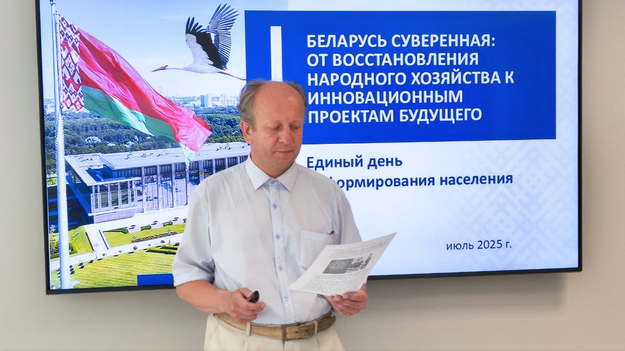 О самой важной дате в истории каждого государства – Дне Независимости – шла речь на Едином дне информирования. Для Беларуси освобождение столицы нашей Родины от фашистских захватчиков стало точкой отсчета нового этапа истории. День Независимости Республики Беларусь (День Республики) был утверждён на республиканском референдуме 24 ноября 1996 года абсолютным большинством голосов. Наша независимость – это честный труд каждого, служение Родине и стремление к высоким достижениям. Был сделан акцент на итогах Великой Отечественной войны и уроках истории, знаковых достижениях и инновационных проектах суверенной Беларуси.