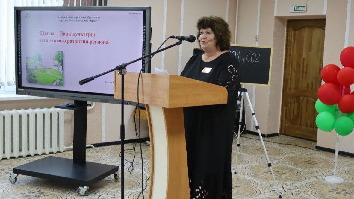 Директор ГУО «Средняя школа №16 г.Орши» Галина Яковлевна Кабышева выступила с докладом «Школа – парк культуры устойчивого развития».