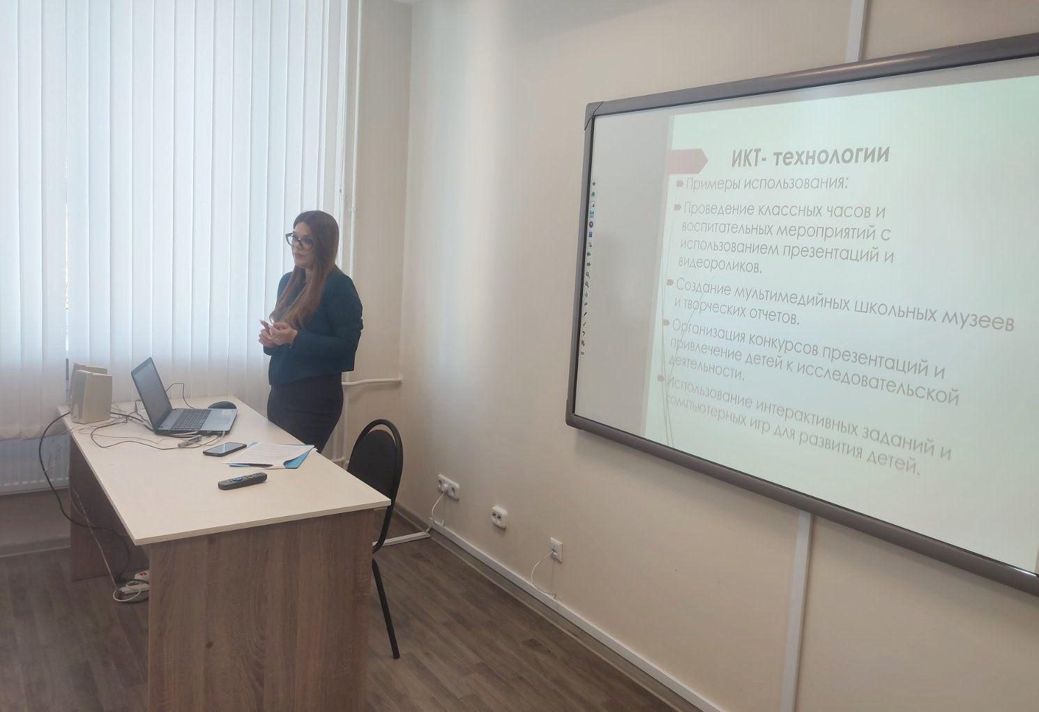 В своем выступлении Ирина Викторовна Сидоренко, учитель ГУО «Средняя школа № 38 г.Витебска», осветила методические аспекты совершенствования воспитательной работы, актуальные направления воспитательной работы с учащимися в учреждениях образования. Она провела с участниками семинара деловую игру «От компетентного учителя к современной образовательной среде».