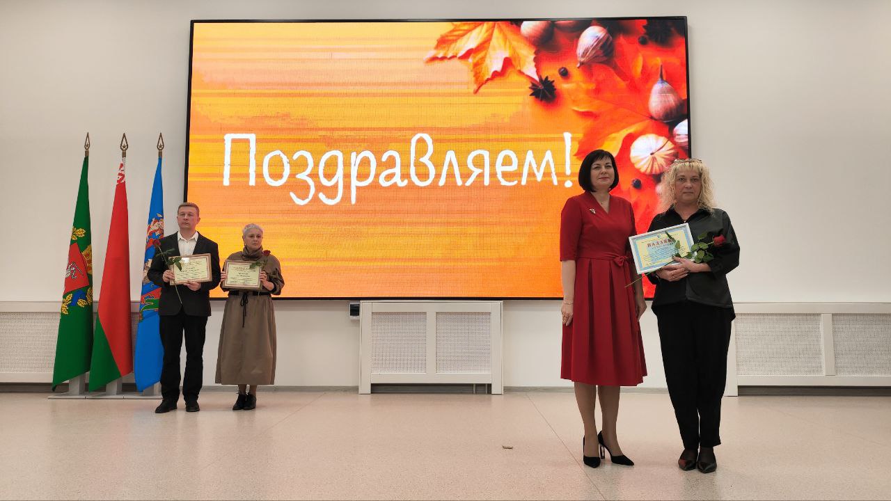 Почётной грамотой Витебского областного института развития образования награждены Ирина Николаевна Демидова, главный бухгалтер, Оксана Ивановна Оборович, начальник центра сопровождения работы с детьми, достигшими высоких показателей в учебной и общественной деятельности, Ольга Викторовна Яскевич, методист учебно-методического отдела.