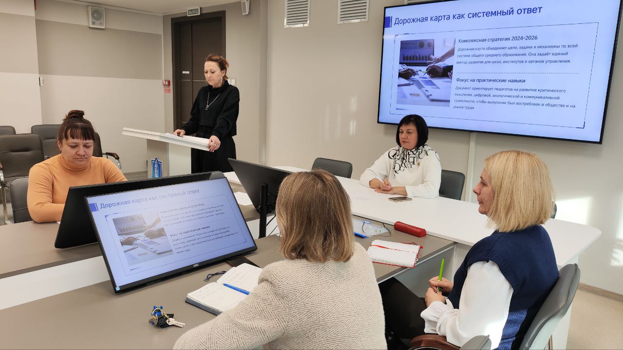 Состоялось заседание Совета института, на котором был заслушан доклад начальника центра дошкольного, общего среднего, специального образования и экспертной деятельности Валентины Владимировны Пикулик о ходе реализации Дорожной карты по формированию функциональной грамотности учащихся в учреждениях образования Республики Беларусь, реализующих образовательные программы общего среднего образования, на 2024-2026 годы. В дополнение к основной информации начальник управления профессионального развития и научной, инновационной, прогнозирующей деятельности Ольга Александровна Шпанькова акцентировала внимание на направлениях деятельности по повышению профессиональной компетентности педагогических кадров в вопросах формирования функциональной грамотности учащихся.