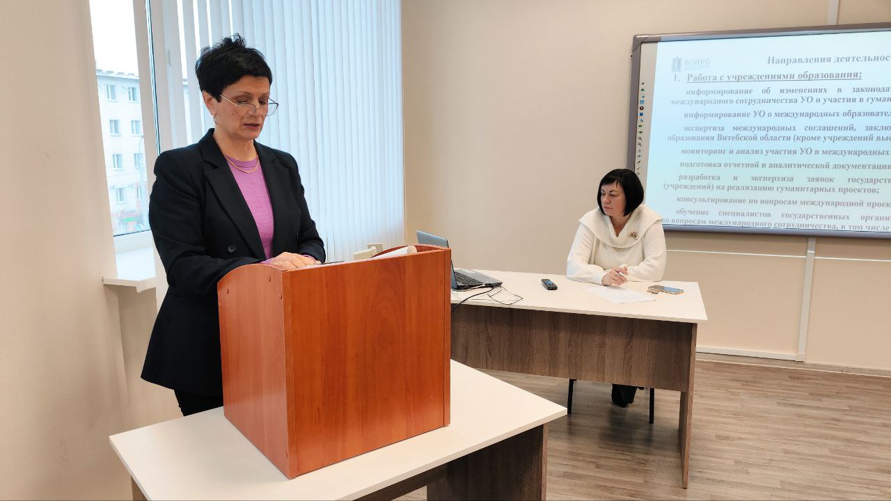 Начальник управления профессионального развития и научной, инновационной, прогнозирующей деятельности Ольга Александровна Шпанькова в выступлении обратила внимание на направлениях консультационного центра по методическому сопровождению международной проектной деятельности.