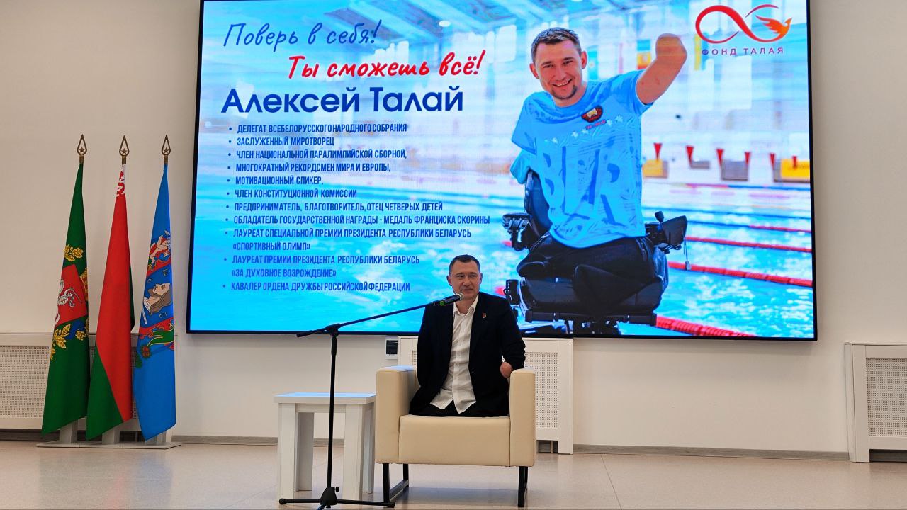 Сегодня в институте состоялась мотивационная встреча-тренинг «Духовно-нравственное воспитание молодежи и идеология белорусского государства» с участием Алексея Талая — мастера спорта по плаванию, члена Национальной паралимпийской сборной Республики Беларусь, многократного рекордсмена мира и Европы, предпринимателя, учредителя благотворительного фонда, мотивационного спикера.