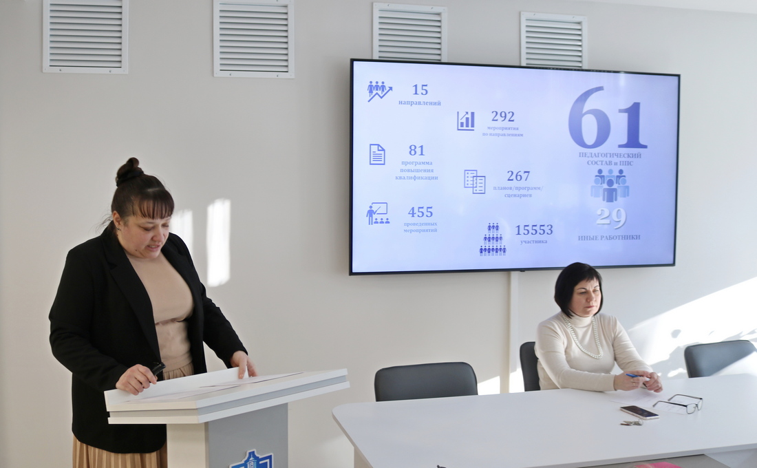 Докладчиком по первому вопросу выступила первый проректор института Анна Николаевна Деревяго, которая представила информацию о результатах работы по основным направлениям деятельности института в 2025 г. и конкретизировала предложения по совершенствованию деятельности в 2026 г.