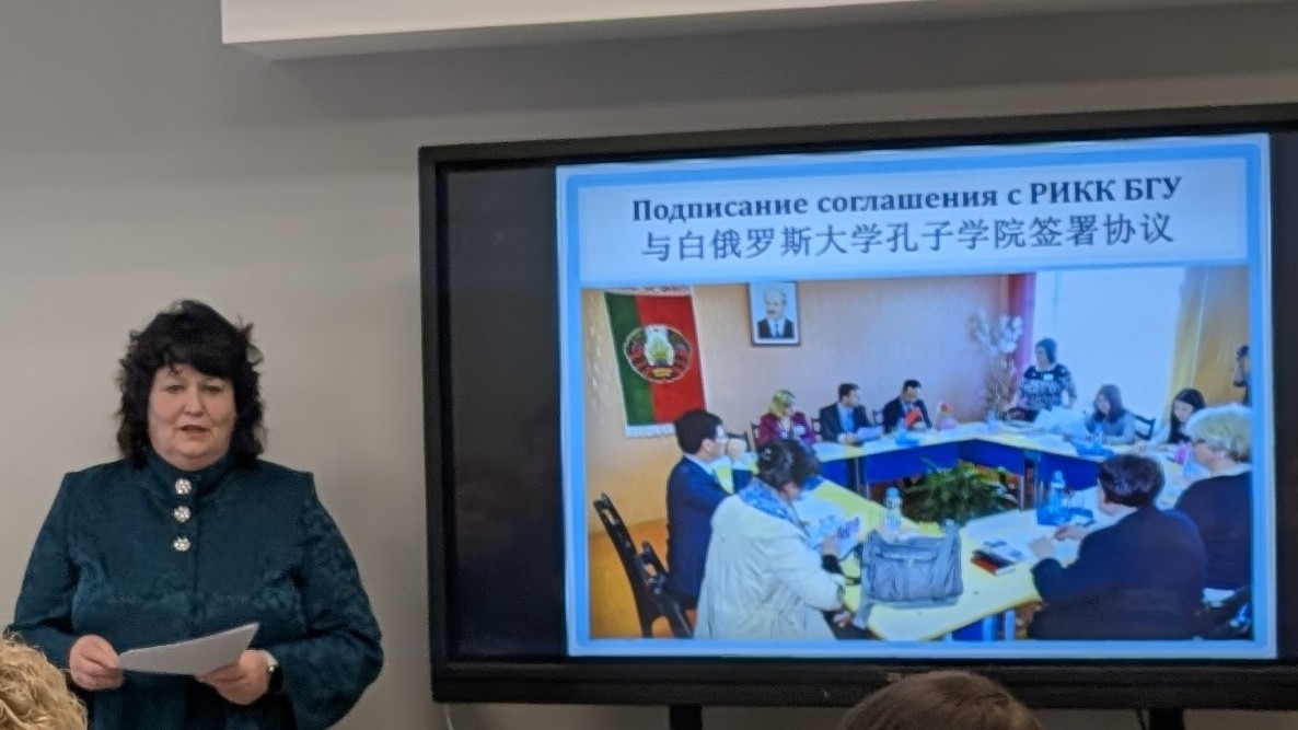 Галина Яковлевна Кабешева, директор ГУО «Средняя школа №16 г.Орши», представила уникальный опыт сотрудничества школы и Республиканского института китаеведения имени Конфуция Белорусского государственного университета по организации образовательного процесса и подготовке учителей китайского языка, а также достижения учащихся и педагогов.