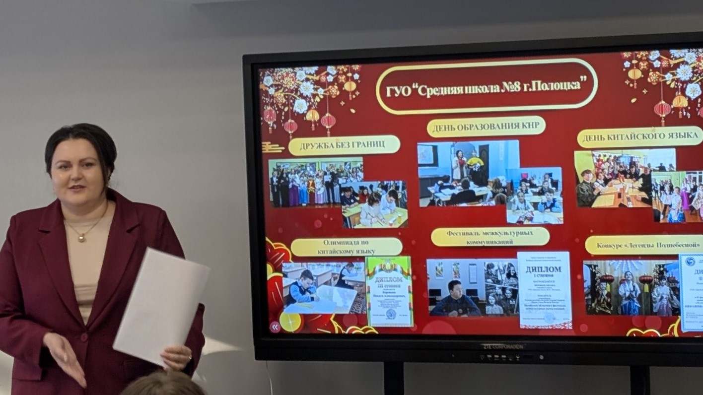С чего начать путь учреждения образования по внедрению китайского языка в образовательный процесс – от объединений по интересам до районного центра изучения китайского языка и культуры – рассказала директор ГУО «Средняя школа №8 г.Полоцка» Алёна Анатольевна Приймак, а учитель китайского языка Наталья Михайловна Щербакова щедро поделилась своими методическими находками.