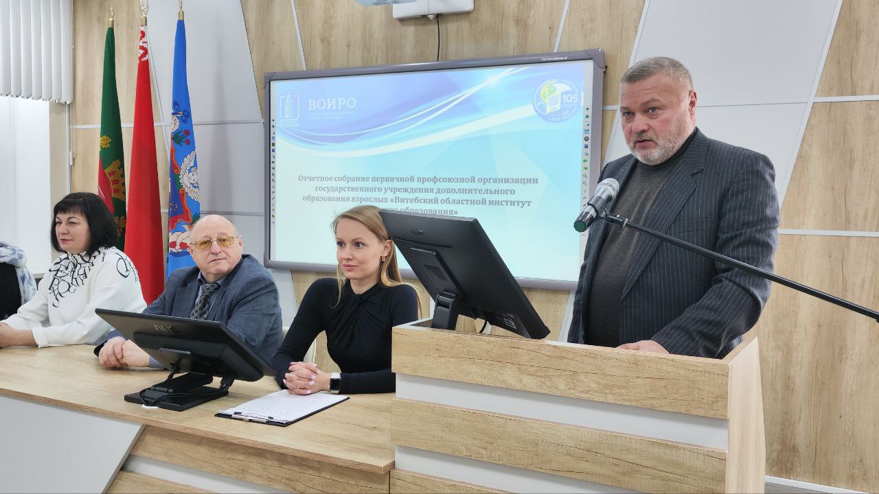 Гостем собрания стал Сергей Иванович Аникеев, заведующий отделом организационной и общественной работы, заместитель председателя Витебской областной организации Белорусского профессионального союза работников образования и науки. В своем приветственном слове он поблагодарил коллектив за совместный труд, преданность профессии и активное участие в укреплении профсоюзного движения.