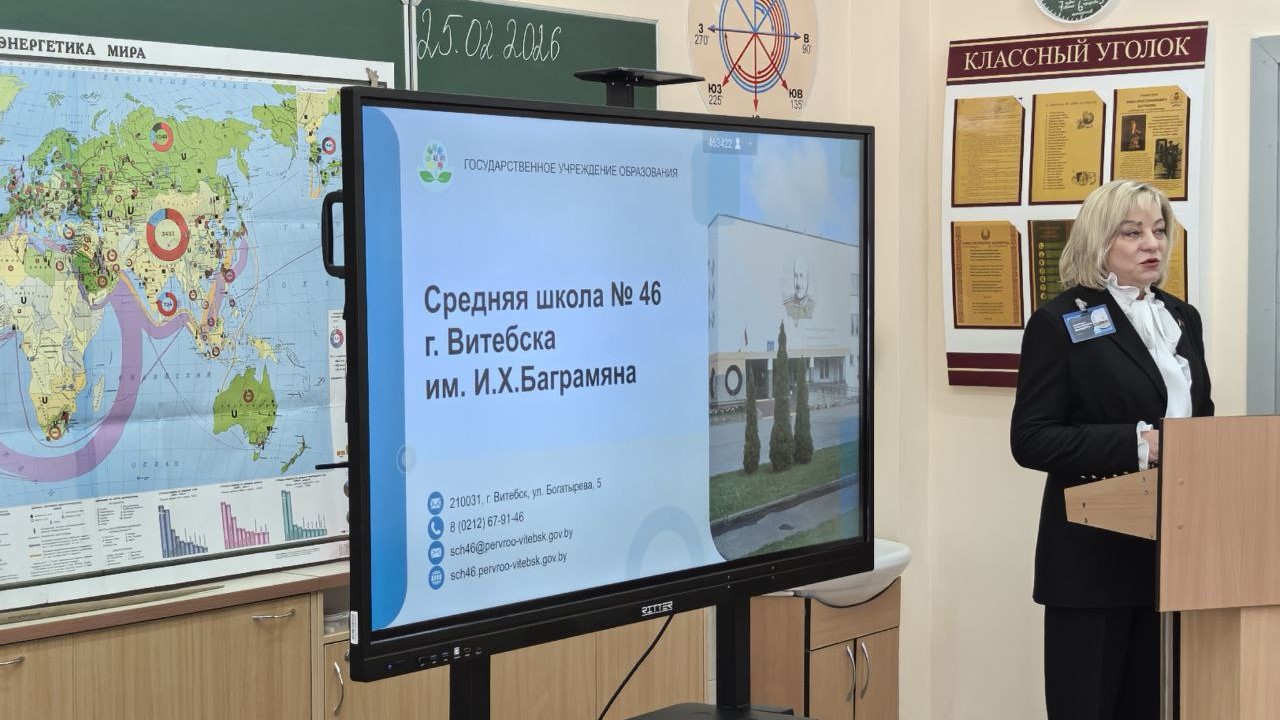 Второй день прошёл на базе ГУО «Средняя школа №46 г.Витебска им. И.Х.Баграмяна». Гостей мероприятия поприветствовала директор Валентина Владимировна Шамшура. О системе работы учреждения образования рассказала Наталия Андреевна Марченко, заместитель директора по учебной работе.