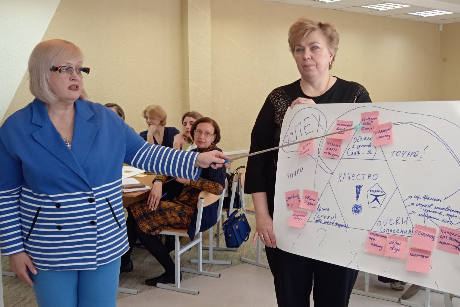 Под руководством модераторов – Аллы Михайловны Мильман, доцента кафедры педагогики, психологии, частных методик и менеджмента образования, кандидата педагогических наук, куратора областного проекта, и Оксаны Ивановны Оборович, методиста управления профессионального развития и научной, инновационной, прогнозирующей деятельности института, участники в формате «Мирового кафе» разработали четырехмерную модель клуба «Наставничество» по ключевым направлениям: