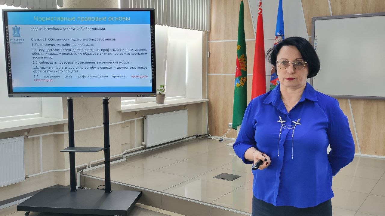 Начальник и методисты управления профессионального развития и научной, инновационной, прогнозирующей деятельности Ольга Александровна Шпанькова, Павел Васильевич Зязюлькин и Светлана Михайловна Шингарева ответили на вопросы участников семинара, связанные с внедрением профессиональных стандартов в учреждениях образования, проведением аттестации, в том числе молодых специалистов.