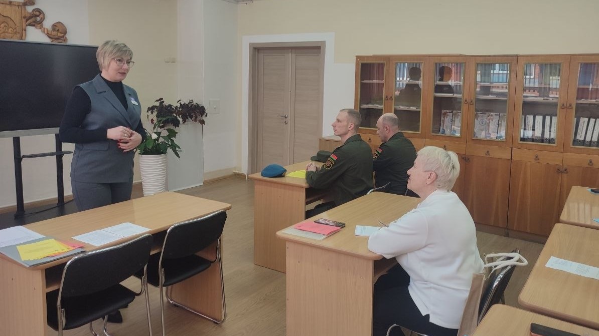 Евгений Геннадьевич Куней, начальник отдела призыва на военную службу Военного комиссариата г.Витебска, Витебского и Лиозненского районов Витебской области, и Эрнест Вячеславович Юпатов, старший офицер отделения идеологической работы Войсковой части 55287, провели для слушателей круглый стол, где обсуждались вопросы организации и проведения практических занятий по учебному предмету «Допризывная и медицинская подготовка». Отдельно рассматривался вопрос по проведению профориентационной работы с учащимися для осознанного выбора ими обучения в военных учреждениях образования; осуществление учета военнообязанных в учреждении образования и предоставление отчетов в военный комиссариат; оказание помощи военному комиссариату в отборе юношей для поступления в военные учреждения образования.