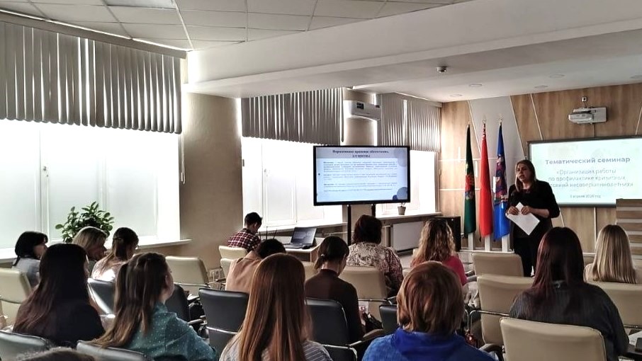 Сегодня для заместителей директоров по воспитательной работе, педагогов-психологов, педагогов социальных, учителей, выполняющих функции классного руководителя, прошел тематический семинар «Организация работы по профилактике кризисных состояний несовершеннолетних».