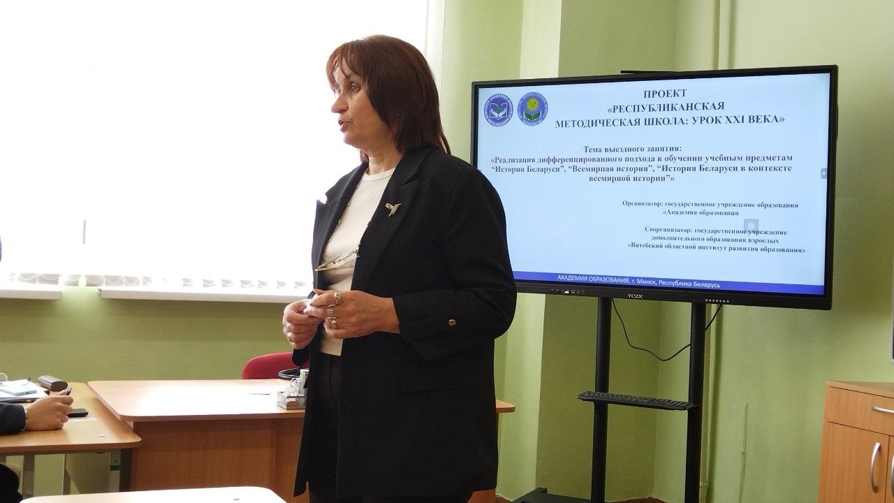 Витебские педагоги поделились опытом работы. Виктор Леонардович Липский, учитель истории высшей квалификационной категории, в выступлении «От простого к сложному» продемонстрировал возможности применения уровневой дифференциации как на уроках, так и во внеурочной деятельности.