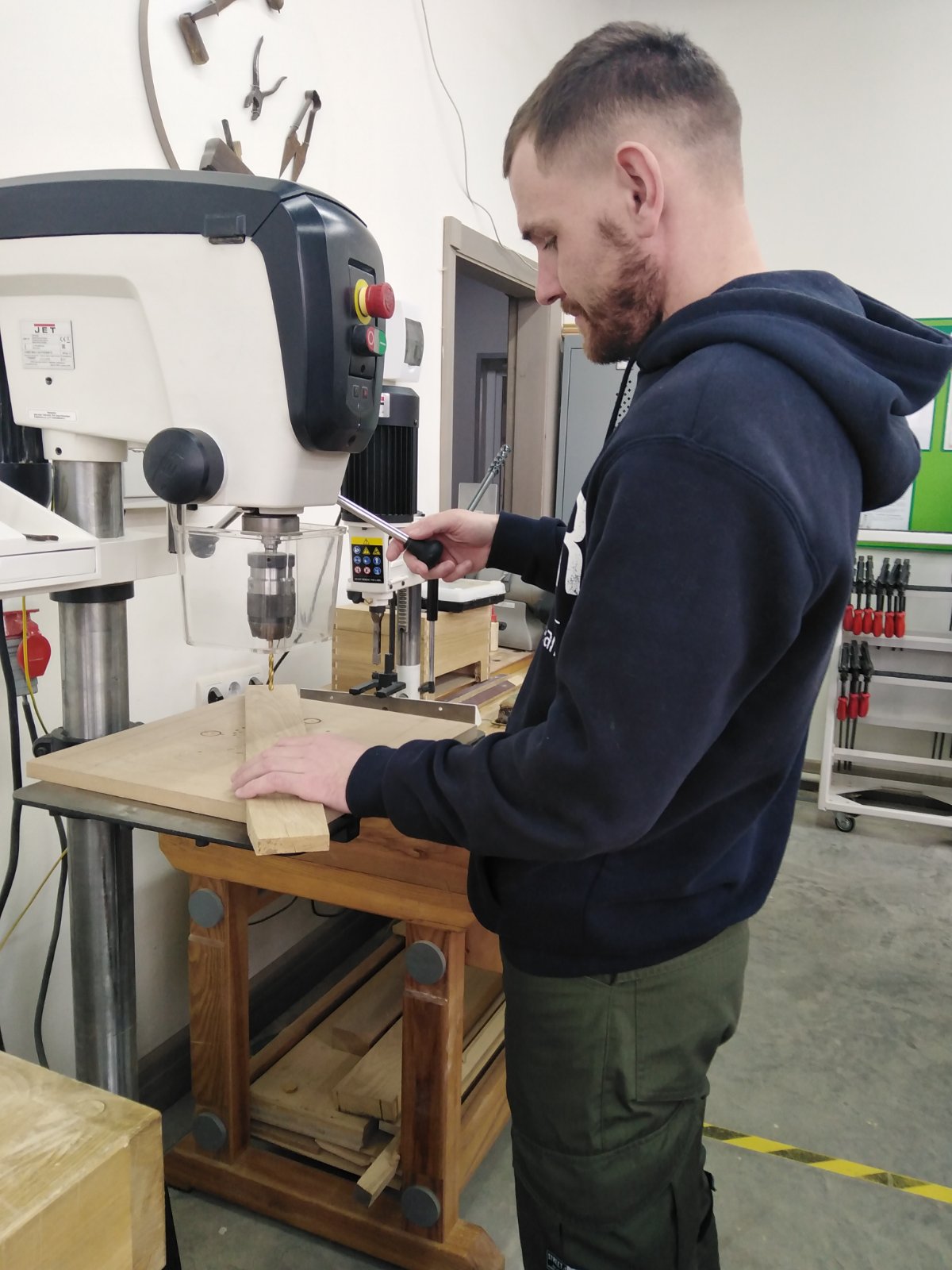 В центре компетенций филиала БГТУ «Витебский государственный технологический колледж» практические занятия провел Сиваков Максим Александрович, мастер производственного обучения высшей квалификационной категории, эксперт международного класса конкурсов профессионального мастерства по компетенции «Столярное дело».
