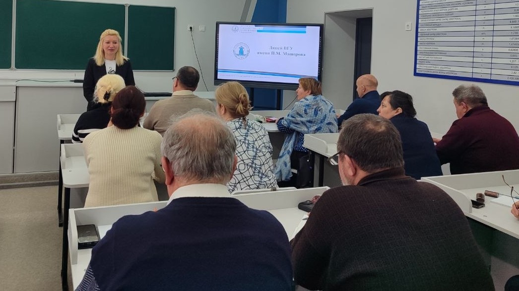 Директор лицея УО «Витебский государственный университет имени П.М.Машерова» Наталья Владимировна Щеглова познакомила гостей с историей учебного заведения, рассказала об успехах учащихся и сложившихся традициях. Михаил Михайлович Чернявский, старший преподаватель кафедры инженерной физики, учитель физики, рассказал о своей системе подготовки учащихся к централизованному экзамену и тестированию, поделился практическим опытом подготовки абитуриентов к вступительным экзаменам по физике.