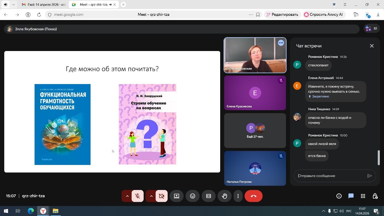 В ходе вебинара учителя физики рассмотрели ключевые вопросы формирования функциональной грамотности учащихся в контексте физического образования. Элла Николаевна осветила структуру и компоненты функциональной грамотности, а также представила эффективные приёмы и типы заданий, направленные на развитие естественнонаучной, читательской и математической грамотности на уроках физики. Особое внимание было уделено практическим аспектам проектирования учебного занятия, направленного на формирование функциональной грамотности.