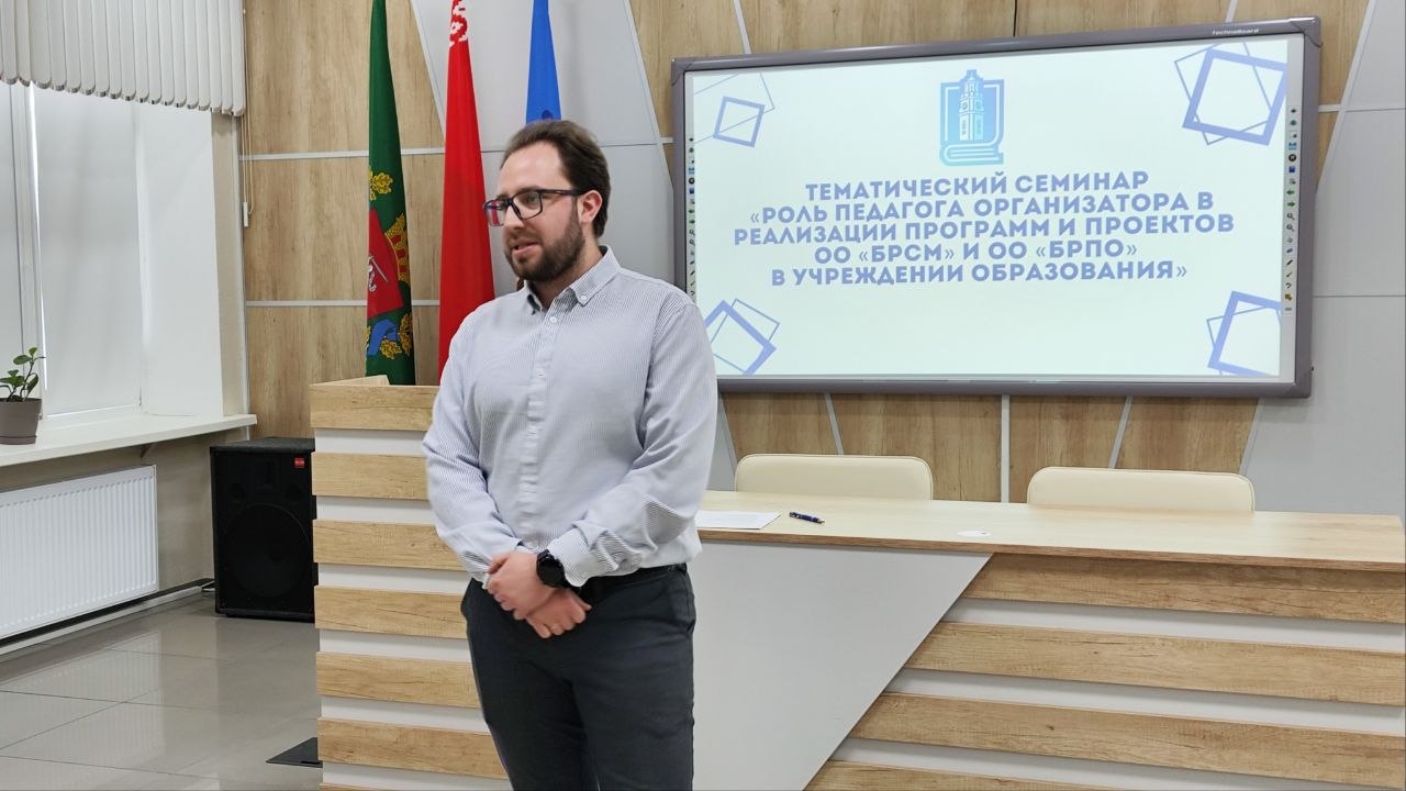 Ключевая роль в организации деятельности общественных объединений в учреждении образования принадлежит педагогу-организатору. Именно он координирует участие учащихся в проектах ОО «БРСМ» и ОО «БРПО», способствует формированию их гражданской позиции и патриотических качеств. Вопросу совершенствования профессиональных компетенций специалистов в этой области был посвящён тематический семинар «Роль педагога-организатора в реализации программ и проектов ОО «БРСМ» и ОО «БРПО» в учреждении образования».